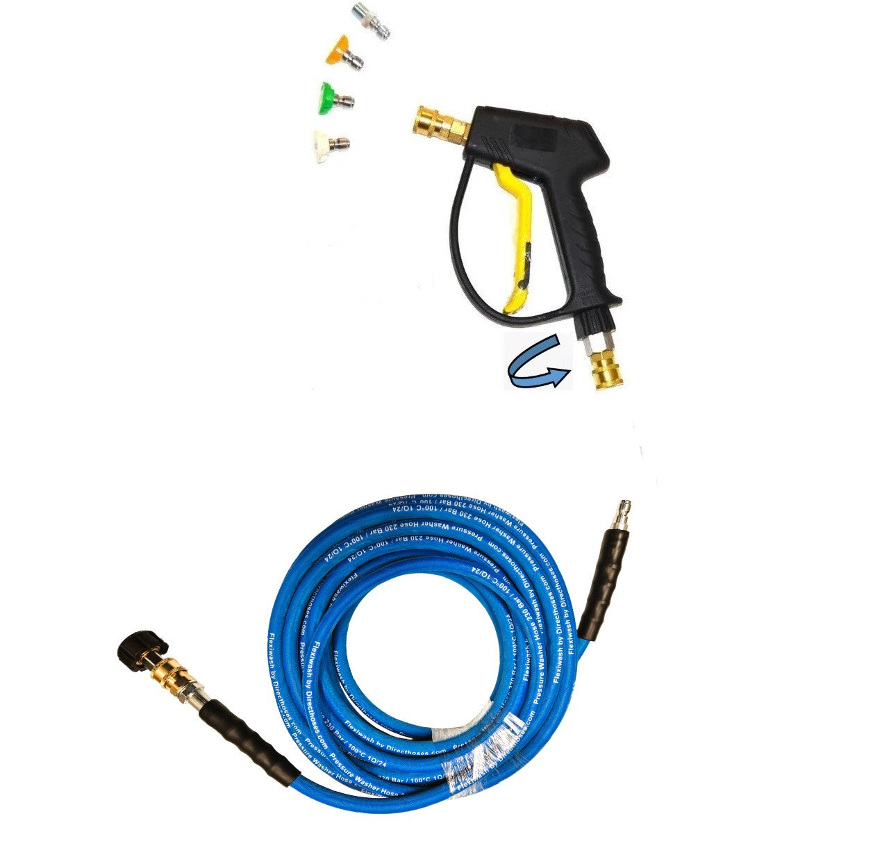 Custom Made hose M22 outlet with 14mm centre Pressure Washer hose, Short Swivel Trigger Gun & Quick fit nozzles.