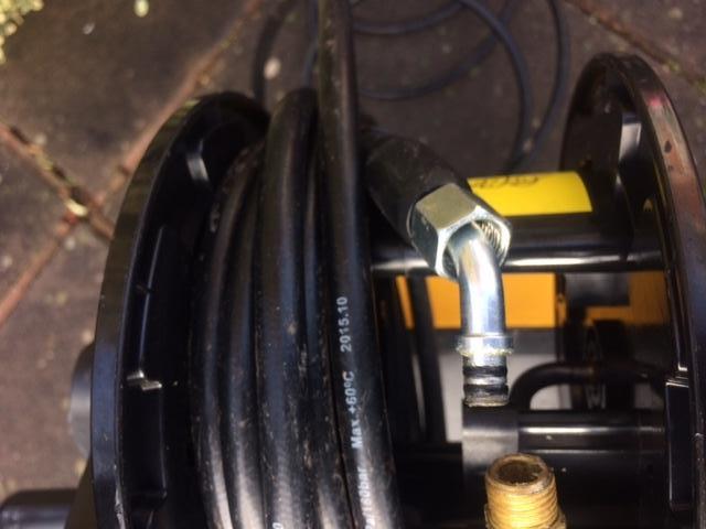 Aldi Workzone style Electric Pressure Washer Hose. To attach hose to trigger press the yellow clip and pull out the hose, the new hose will click right back in.