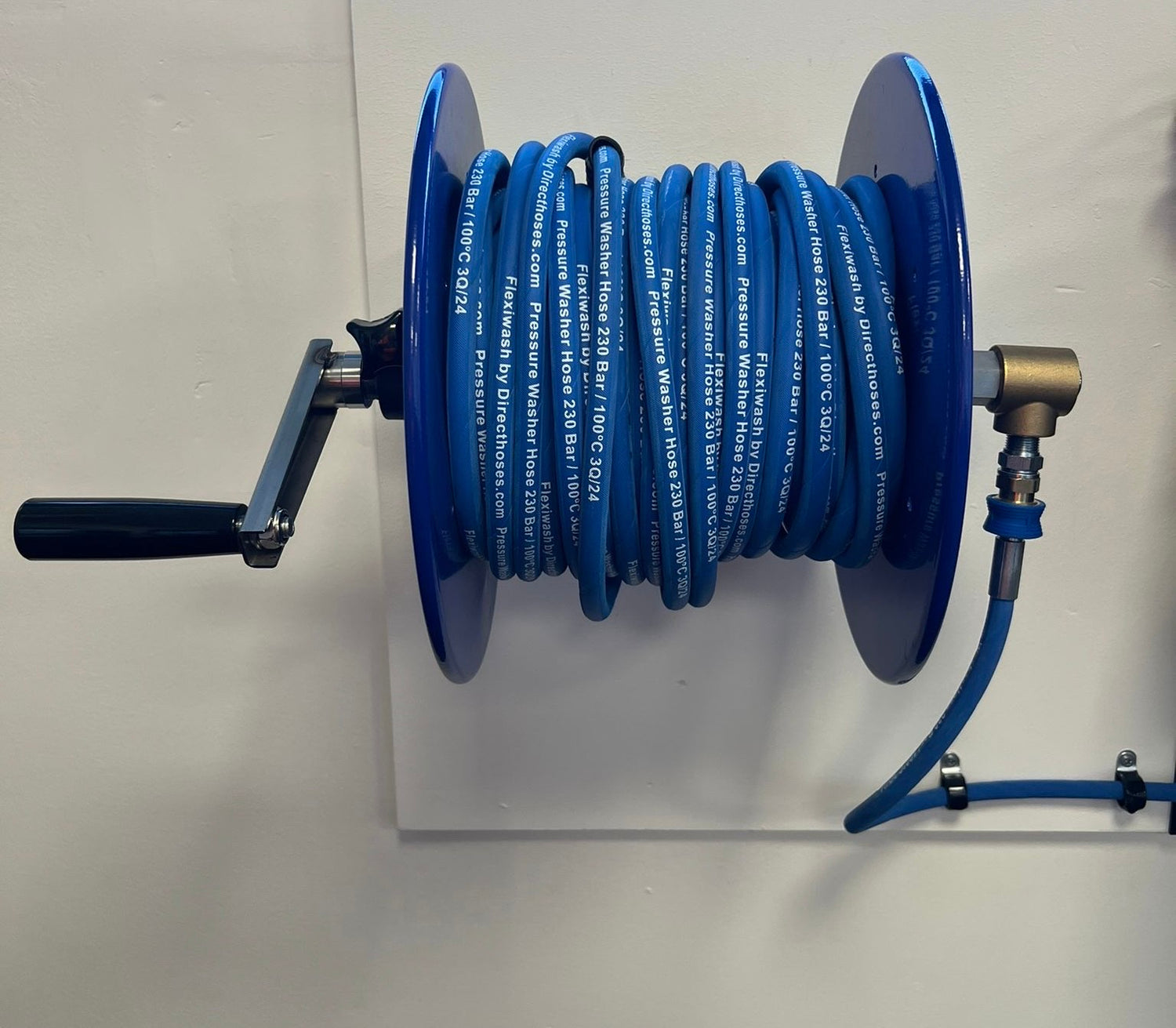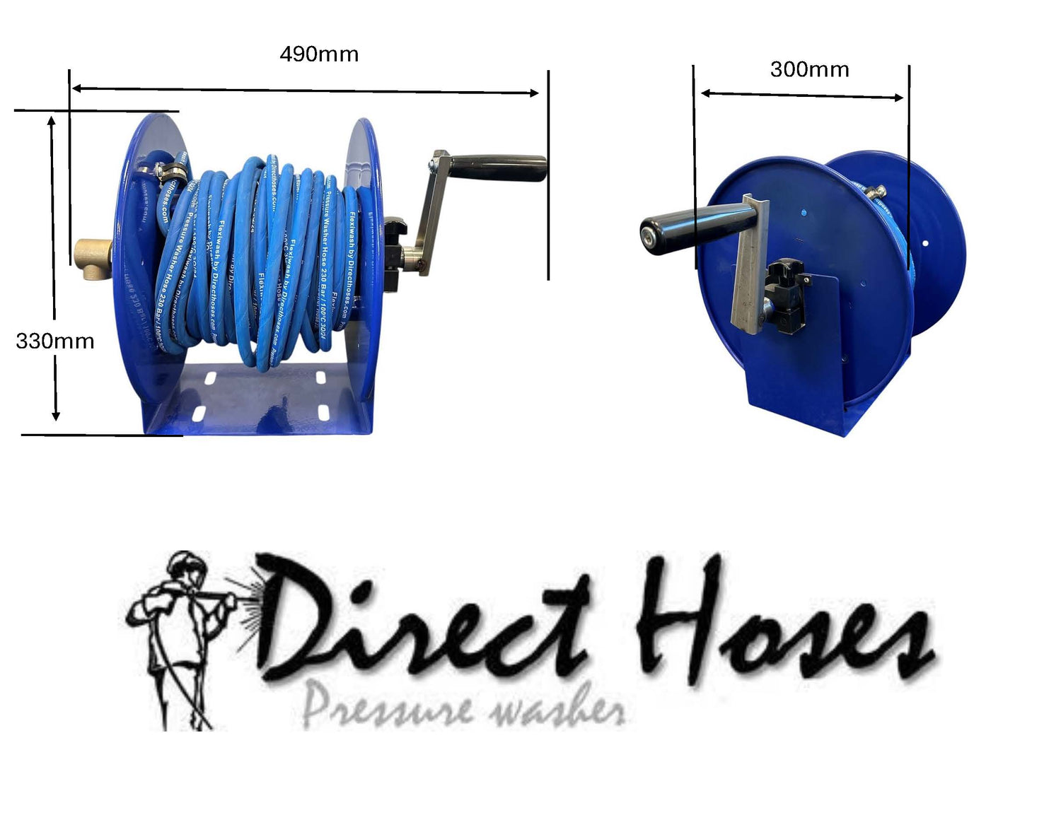 15m Manual Hose Reel complete with hose, ideal for hose storage , can be wall , floor or ceiling mounted. Comes complete with a 2.5m link hose to connect to your pressure washer , making it easier to keep your pressure washer located inside the garage , and just use the hose length you require upto 15m.