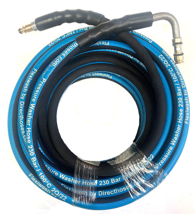 Hose rated 230 bar,made from our own Flexiwash Blue/Black New generation Pressure Washer hose 100% Rubber , kink free construction .