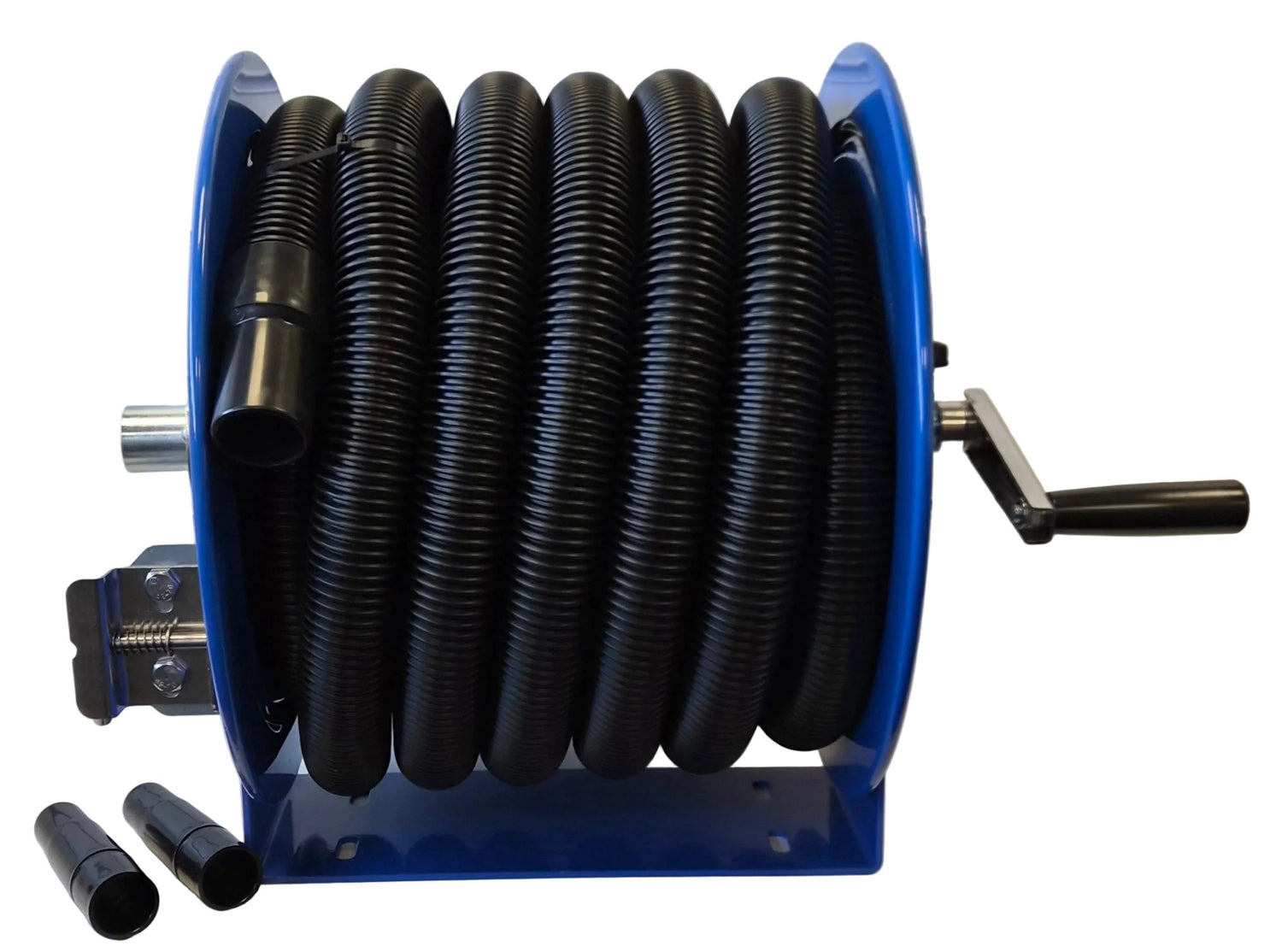 Manual Vac Hose Reel complete with 15 mts of 38mm Vac Hose.